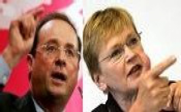 Marie-George Buffet, PCF, exige, à propos du traité européen simplifié, un référendum alors que François Hollande, PS, annonce, après avoir été reçu lundi matin à l'Elysée par le président Nicolas Sarkozy: "Nous ne nous opposerons pas" au traité simplifié européen...