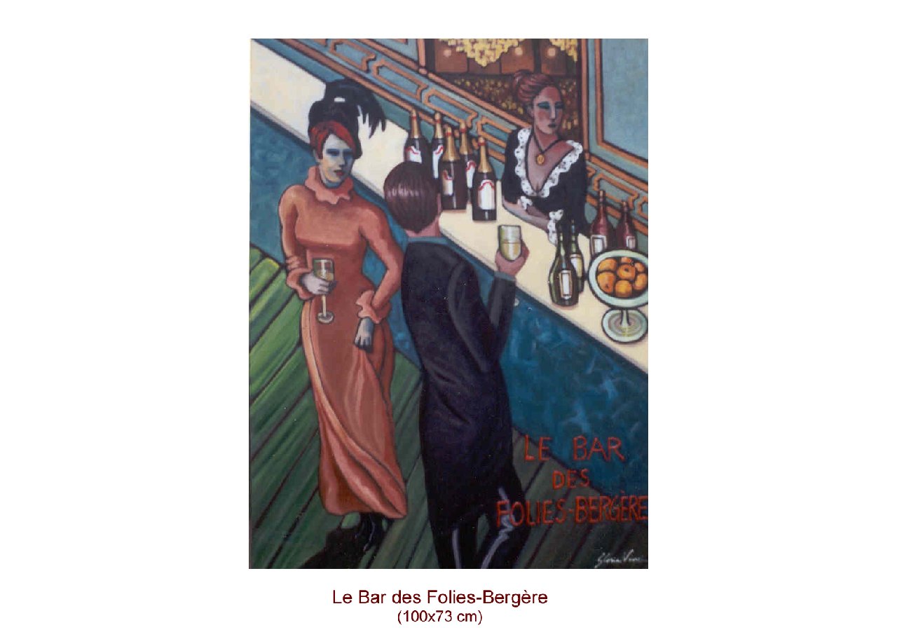 Gloria : Je ne sais pas si on peut parler d'influence : mes pastels n'ont rien à voir avec mes acryliques sur toile. Néanmoins, je reconnais volontiers l'influence de ma grand-mère florentine. J'ai plutôt créé des séries : le carnaval, les oiseaux exotiques, les arts de la scène, la forêt. Bordeaux, naturellement, m'inspire ces temps-ci.