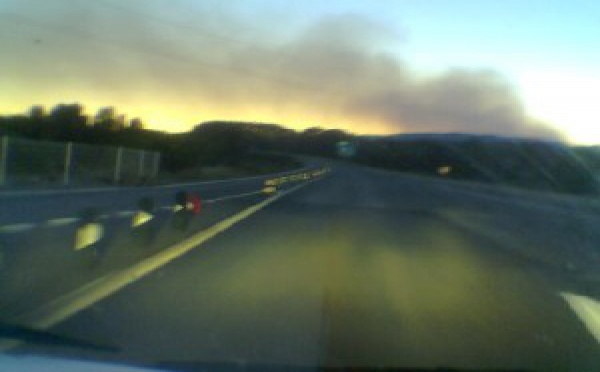 16H20: la sirène des pompiers donne l'alarme. Un gros nuage gris envhait le ciel. 16H40: un employé de la DDE déclare que la route est coupée parce que le feu l'a envahie. 16H50: la police, en faction sur la route de Miramas, a barré la route qui mène au quartier St Jean. Elle a reçu...