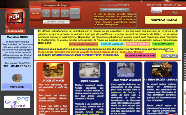 Voyance, sciences occultes, marabouts, medium, guérisseurs et magnétiseurs occupent une place non négligeable dans notre vie. Même si les pouvoirs occultes ou mediumniques de ces praticiens ne trouvent pas de fondement scientifique, 21% des femmes et 9% des hommes, en France, auraient déjà rencontré au moins une fois un ou une voyante. (source WIkipedia)