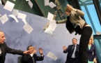 Une jeune femme se rue sur Mario Draghi: «Arrêtez la dictature de la BCE» (vidéo). Elle a sauté sur le bureau du président de la Banque centrale européenne lors d’une conférence de presse ce mercredi