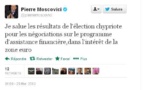Le ministre socialiste des Finances français s'est joint à son homologue conservateur allemand pour saluer ce lundi matin l'élection du non moins conservateur Nicos Anastasiades à la présidence chypriote
