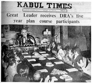 Depuis avril 1980, l'invocation traditionnelle "Au nom de Dieu le Miséricordieux, le Compatissant", est de nouveau utilisée dans les documents officiels, une pratique abandonnée par Taraki. En 1982, le régime réécrit la constitution du parti en supprimant toute référence au marxisme-léninisme (malgré l'opposition des Khalqists). Cependant la stratégie du front uni du PDPA est considéré par les observateurs comme largement inefficace. En 1986, sous la pression de l'Union soviétique, Karmal est destitué en faveur de l'ancien chef de l'organisation afghane de sécurité KHAD, le Dr Najibullah.