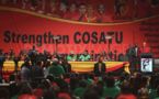 La discussion a été animée et marqué par des arguments idéologiques fort. Avant la décision, les délégués ont entendu les discours du Secrétaire Général de la FSM George Mavrikos (en lien) et de la secrétaire général de la CSI Sharan Burrow. La FSM se félicite de cette décision, elle a remercié les délégués et tous les syndicalistes, les militants qui se sont battus au cours des sept dernières années pour obtenir cette adhésion. La COSATU continue d'appeler à l'unité les travailleurs du monde entier et continuera d'exiger que tous les syndicats travaillent à l'unité afin de construire et de consolider le pouvoir de la classe ouvrière. En prenant une position ferme contre les triples maux que sont l'apartheid, le colonialisme et le capitalisme, la FSM a exprimé sa profonde sympathie pour les souffrances de la plupart des personnes qui travaillent dans les pays en développement, et a partagé nos combats contre l'apartheid. Les militants syndicalistes sud-africains, les cadres de l'héroïque Parti communiste sud-africain (SACP) ont soutenu la nécessité d'adhérer à la FSM et de rejoindre ses frères et sœurs dans la lutte de classe dans le monde entier. Avec cette résolution, qui est un premier pas positif, la COSATU revient à sa famille, à sa grande famille qui lutte contre l'exploitation capitaliste et de la barbarie impérialiste. A partir d'aujourd'hui nos luttes, les luttes internationales seront plus fortes. La COSATU est fondée en 1985, elle compte 1,8 millions d'adhérents Membre de l'alliance anti-apartheid entre l'ANC, le SACP et la COSATU Secrétaire Général Zwelinzima Vavi Président Sdumo Dlamini Syndicats affiliés : Chemical, Energy, Paper, Printing, Wood and Allied Workers' Union (CEPPWAWU) South African Commercial, Catering and Allied Workers Union (SACCAWU) Communication Workers Union (CWU) Southern African Clothing and Textile Workers Union (SACTWU) Food and Allied Workers Union (FAWU) South African Democratic Nurses' Union (SADNU) Democratic Nursing Organisation of South Africa (DENOSA) South African Democratic Teachers Union (SADTU) Musicians Union of South Africa (MUSA) South African Football Players Union (SAFPU) National Education, Health and Allied Workers' Union (NEHAWU) South African Medical Association (SAMA) National Union of Mineworkers (NUM) South African Municipal Workers' Union (SAMWU) National Union of Metalworkers of South Africa (NUMSA) South African State and Allied Workers' Union (SASAWU) Performing Arts Workers' Equity (PAWE) SASBO - The Finance Union Police and Prisons Civil Rights Union (POPCRU) South African Transport and Allied Workers Union (SATAWU) South African Agricultural Plantation and Allied Workers Union (SAAPAWU)
