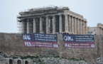 Des membres du Parti communiste grec (KKE) ont déployé jeudi deux bannières sur les murs de la colline de l'Acropole avec des slogans contre l'accord signé entre la Grèce et l'ex-République yougoslave de Macédoine (ARYM) - traduction Nico Maury |