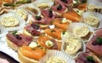 Après une longue conversation, Mr Pons me proposa de visiter son site internet pour me faire une idée un peu plus concrète des plats qu'ils pouvait nous proposer. Parmi eux, nous avons le choix entre les cocktails avec des assortiments de toasts froids (hum, un régal, je vous les conseille !), des toasts chauds, des minis brochettes (Tomate cerise et mozzarella au basilic, mini boudin antillais aux pommes ou du magret de canard fumé aux ananas) et enfin des assortiments de petits gâteaux sucrés.